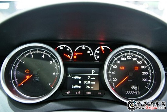 傳統(tǒng)的儀表盤設(shè)計(jì)也得到了延續(xù),上部分依次為機(jī)油溫度表、燃油量表和水溫表,中間為行車電腦顯示屏,不過在方向盤左側(cè)處,頂配車型新增了電子手剎的按鍵。中控臺同樣采用了7英寸的彩色液晶顯示屏,并集成了GPS導(dǎo)航和倒車影像功能,同時(shí)還新增了能配合智能行車控制系統(tǒng)的車載互聯(lián)的新功能。而下方的系統(tǒng)控制區(qū)域和四區(qū)獨(dú)立空調(diào)操控區(qū)域的布局也都與現(xiàn)款508一樣。在空調(diào)區(qū)域的“REAR ON”鍵能開啟/關(guān)閉后排的獨(dú)立空間,這樣能避免能源的浪費(fèi)。