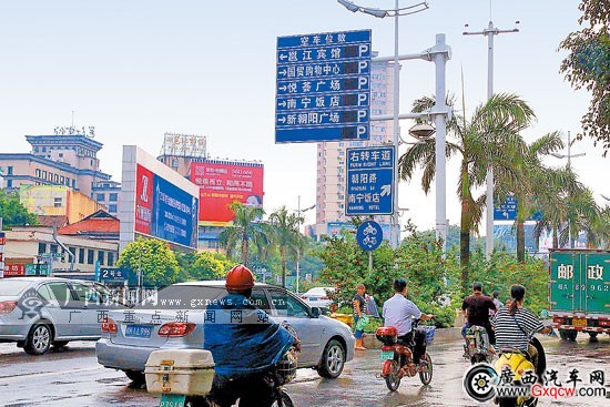 13日,記者沿民族大道探訪,比對去年底出臺的《南寧市戶外廣告和招牌設置規(guī)劃導則》(以下簡稱《導則》),部分戶外廣告、招牌等設施存在問題。在埌東客運站一帶,高層建筑比較少,也不是商業(yè)集中區(qū),戶外廣告較少,各類招牌比較規(guī)范。鳳嶺立交周邊的高層建筑開始增多,個別商住樓樓頂在同一方向豎立著兩三塊招牌,甚至樓頂4個方向都有招牌或樓標,這種情形在《導則》中是不允許的。民族大道往西經過南湖大橋后進入老城區(qū),沿街建筑密集,不符合“一店一招”情形的建筑開始增多。一些內部單位眾多的建筑物,在建筑物正面、側面多個位置都設置了招牌、樓標或廣告,與《導則》要求不符,也顯得比較雜亂。