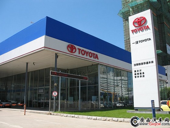 4S店一般是獨(dú)棟建筑,門口豎立著商標(biāo)。