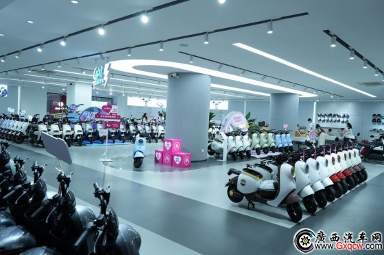 柳州地標(biāo)旗艦店門店外觀設(shè)計和內(nèi)部裝潢都極為考究,極簡格調(diào)盡顯精致的美學(xué)語言,用廣西朋友的話來說,絕對是電動車一條街中“最靚的仔”了!
