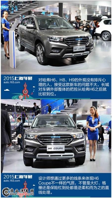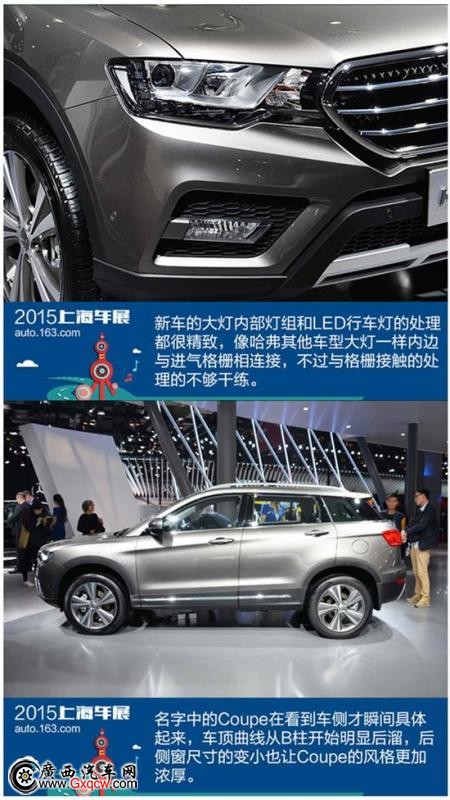 哈弗H6 Coupe更多的運用直線設計讓它的前臉確實有了偏向硬朗的男子漢氣質,對于很多人來說一款SUV正應具有這樣的相貌,不過雖然長城在這輛車上的做工沒有問題,但是視覺上這個“男子漢”有些粗線條,長的不夠精致。