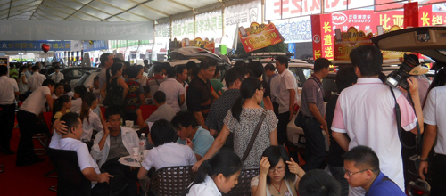 展位人氣(烈日擋不住大家的看車熱情。