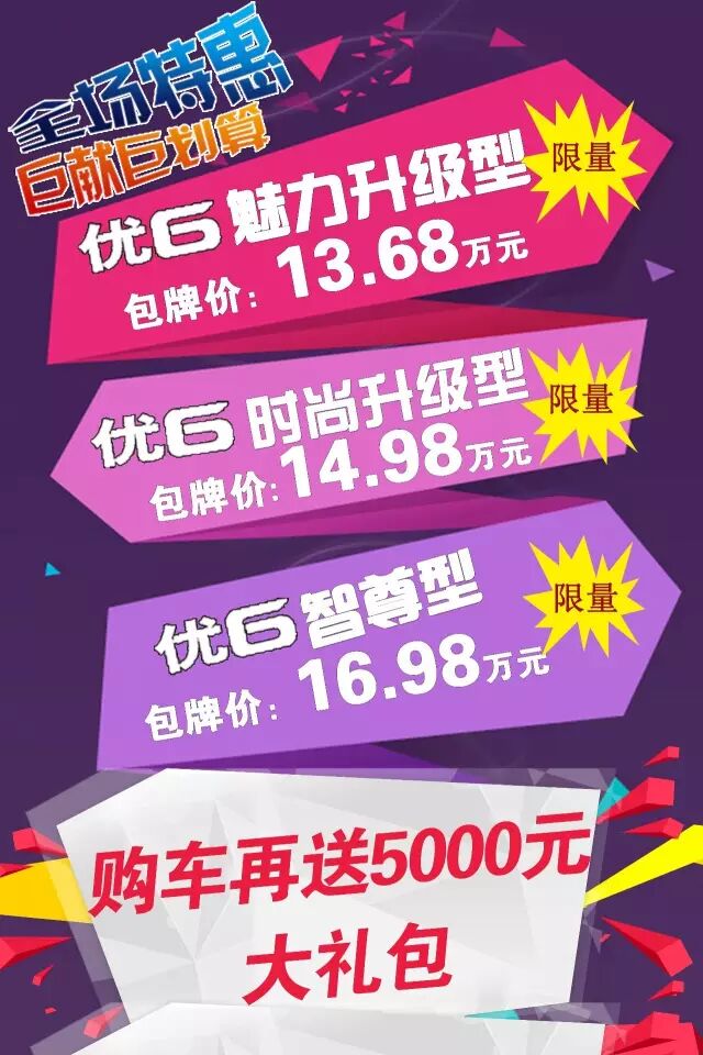 優(yōu)6特供車型鉅惠,數(shù)量有限。