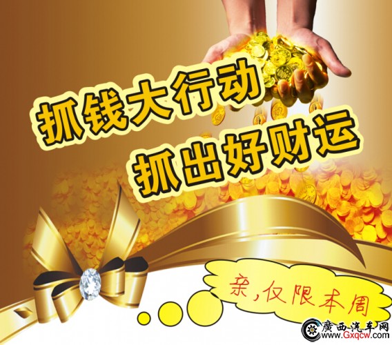 “抓錢,抓財(cái)運(yùn)”活動(dòng)持續(xù)一周,鑫瑞騏希望借這個(gè)活動(dòng)可以給客戶們帶來好運(yùn)。同時(shí)意寓著參與活動(dòng)的客戶們在日后的商務(wù)合作中能夠一本萬利,財(cái)源廣進(jìn)。本次活動(dòng)店內(nèi)MX6、帥客、NV200、俊風(fēng)、D22皮卡等全系車型參與,活動(dòng)期間訂購店內(nèi)任一款車型既有機(jī)會(huì)參與。除了“抓錢,抓財(cái)運(yùn)”活動(dòng)之外,鑫瑞騏還有購車贈(zèng)多重豪禮活動(dòng)開展。更多優(yōu)惠詳情請電話0771-3817560或關(guān)注官方微信,了解更多資訊。