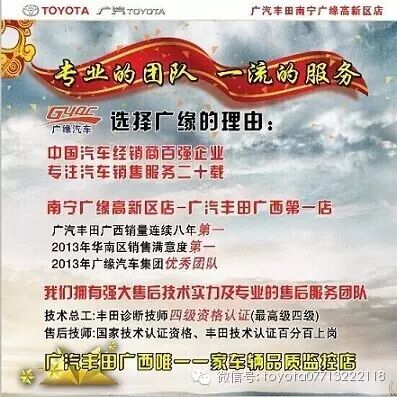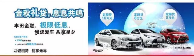廣汽豐田南寧廣緣高新區(qū)店9月12-13日金融大講堂暨公職人員專場特賣會開課啦!教您如何暢享0利息,一張身份證半價“貸”走,省錢、省心、省事!
