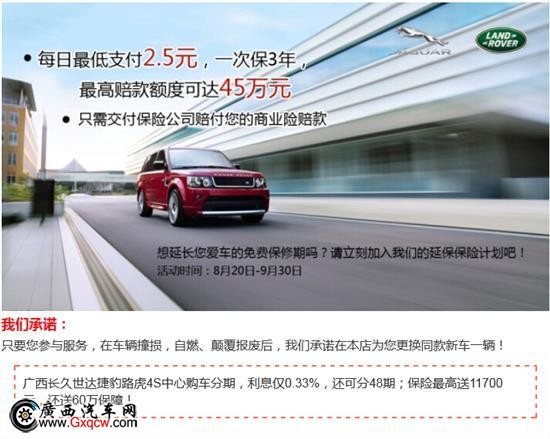【廣西長(zhǎng)久世達(dá)全新標(biāo)準(zhǔn)捷豹路虎4s中心】致力于精致、透明、親善的英倫管家式服務(wù),“世享無憂”是我們對(duì)您的鄭重承諾!