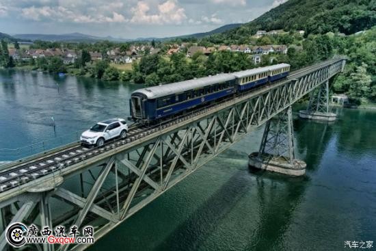 此次列車牽引測(cè)試在位于瑞士施泰因一段長(zhǎng)達(dá)10公里的Museumsbahn軌道上展開。測(cè)試期間,路虎發(fā)行神行從Hemishofen大橋上駛過,橫跨萊茵河。這座具有歷史意義的大跨度鋼結(jié)構(gòu)大橋長(zhǎng)達(dá)約285米,從距谷底約26米的高空橫穿而過。